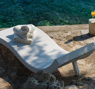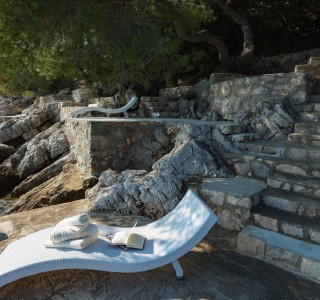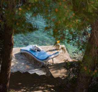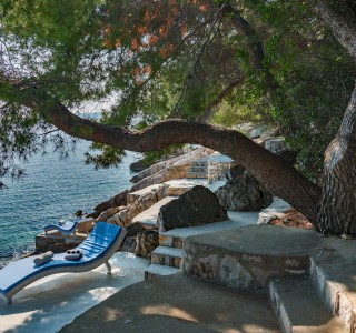 Wenn Sie das Grundstück betreten und die Stufen beginnend auf Höhe der Strasse hinuntersteigen, bemerken Sie schon die Ruhe der Umgebung und auch die speziellen Einzelheiten der Außeneinrichtung. Der Garten, die Fassade, die Wände, Passagen... alles wurde mit viel Stil und im Einklang mit der Natur hergerichtet. Und wenn wir von Natur sprechen, müssen wir auch den kleinen privaten Strand mit seinen mehreren Ebenen erwähnen, mit Sonnenliegen direkt am Meer.
