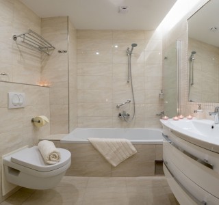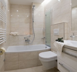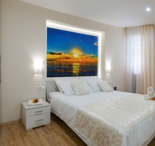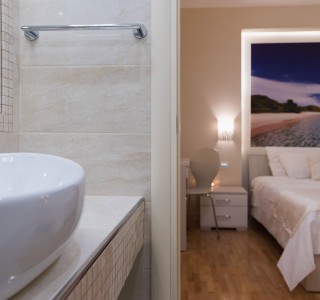 Jedes der Appartements ist voll ausgestattet mit drei Schlafzimmern, alle mit eigenem Bad, TV, Arbeitsplatz und Internetanschluss.