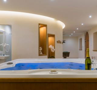 Die untere Ebene beinhaltet den Swimming Pool in Verlängerung der großen Terrasse, ausgestattet mit Sonnenliegen und Loungemöbeln. Das Appartement auf dieser Ebene hat einen Kamin, welcher dem fantastischen Wohnzimmer einen besonderen Charme verleiht. Das obere Appartement hat eine Massagewanne auf der großen Terrasse, welche mit einem großen, klassischen Esstisch für 12 Personen ausgestattet ist. Der große Grillplatz befindet sich auf einer weiteren Ebene in einem kleinen Durchgang, direkt hinter dem Eingang zum Appartement.
