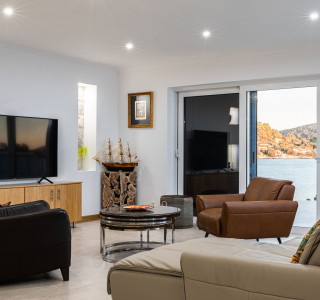 Eine super moderne und doch traditionelle Luxusimmobilie am Meer, die Ihnen den Komfort für 6 Personen in 3 ensuite Schlafzimmern bietet Atemberaubend schön, stilvoll und sehr schön eingerichtet. Das wahrscheinlich erstaunlichste Merkmal dieser Schönheit an der Meeresfront ist das offene Erdgeschoss, welches sich über die fantastische Terrasse mit Blick auf den kristallblauen Ozean erstreckt.