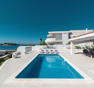 Dieses traumhaft schöne Anwesen am Meer kombiniert Stil, Formen und Materialien, um eine großartige Umgebung am spektakulärsten Ort für einen Urlaub zu bieten. Es ist einfach und doch sehr einzigartig, modern und doch bringt es das Beste aus der Tradition zum Vorschein. Viele prächtige Steinarbeiten und ein Garten am Haus unterstreichen die besondere Einzigartigkeit dieses Anwesens.