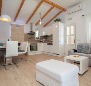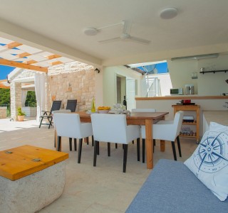 Das Haus wurde mit der Idee eines typischen Feldhauses gebaut, welches sich auch normalerweise in dieser Umgebung finden würde, um das Werkzeug zu lagern und nach einem langen harten Tag auf dem Feld zu entspannen. Dies ist genau das, was wir unseren Gästen als typischenInselortanbieten möchten, ein Stückchen des korculanischen Stils, umgeben von Steinterrassen, Olivenbäumen, Weinfeldern... ein Platz zum Entspannen, genau hier.