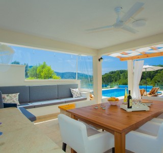 “Das ist der Ort an dem man im Urlaub sein will!” sagte einer unserer Kollegen, als wir auf die Terrasse dieser wundervollen Oase inmitten eines Olivenhains kamen, nur 300m vom Meer entfernt. In einer fast perfekten Umgebung gelegen, mit absoluter Privatsphäre und Komfort, bietet diese neue Villa einen großartigen Zufluchtsort, den man sich nur wünschen kann. Sie ist wirklich hübsch dekoriert mit Schwerpunkt auf den Außenbereich, der nicht nur entspannend und gut angeordnet ist, sondern auch weit entfernt von den nächsten Nachbarn. Der kleine Strand ist in nur 5 min Fußweg erreichbar.