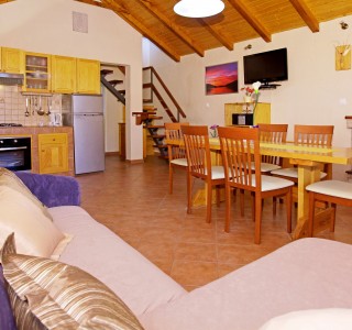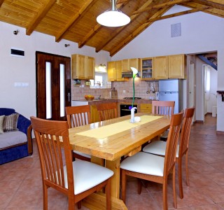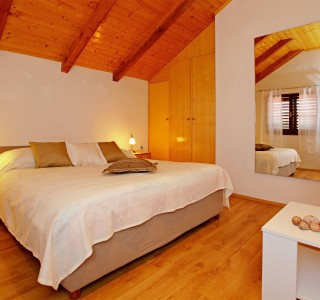Diese Villa eignet sich am besten für eine Familie oder ein Paar. Sie werden vollen Komfort und Ruhe genießen. Zum Haupteingang der Villa gelangt man über die Terrasse. Zuerst kommen Sie in den Hauptwohnraum, der Wohn-, Ess- und Kochbereich einschließt. Es gibt eine voll ausgestattete Küche und einen Kamin. Im Erdgeschoss befindet sich das Badezimmer und ein Schlafzimmer mit King Size Bett. Die Treppen hinauf gelangt man zu den zwei weiteren Schlafzimmern und einem WC.