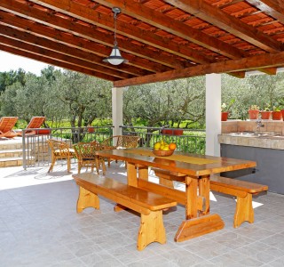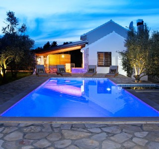Diese Villa liegt in der wahrscheinlich friedlichsten Umgebung, die Sie hier finden können. Es liegt inmitten eines Olivenhains auf einem riesigen Grundstück, weit weg von den nächsten Nachbarn und der Stadt. Sie ist für all diejenigen, die auf der Suche nach Frieden, Ruhe und dem Meer in Fußweite sind. Es gibt einen großen Pool mit Massageteil und einen Spielplatz in der Mitte des großen Gartens.
