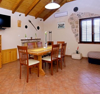 Es liegt im kleinen Örtchen zwischen Vela Luka und der Südküste der Insel, mitten in einem Feld voller Olivenbäume und Weinreben. Es gibt einen Bauernhof in der Nähe und keine vielbefahrenen Straßen.