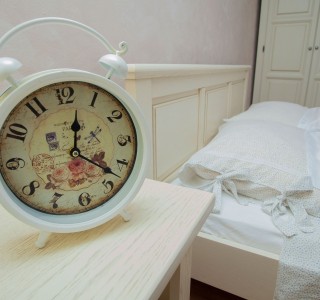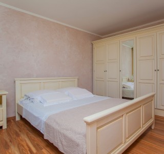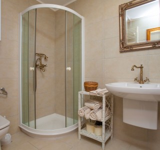 The stairway takes you down to an elegant bedroom with a king size bed and a very comfortable bathroom. The door from a nice hallway takes you onto the ground floor terrace, in a middle of a beautiful garden.