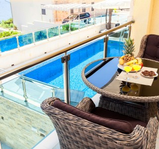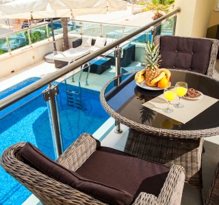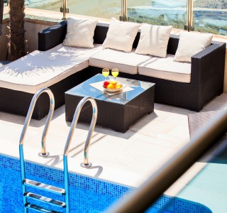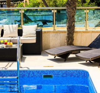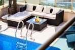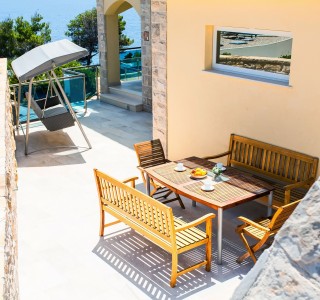 Breakfast tables, sun beds and a large lounge set are placed on the terraces and by the pool to make you enjoy every point of this property.