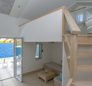It features a true spirit of the peace and quiet, with a modern Robinson atmosphere. The interior is stylish and the exterior is pure hedonism. The three cottages that combine to make this wonderful villa complex have a private terrace each, with loungers and chairs to enjoy the most exquisite view.