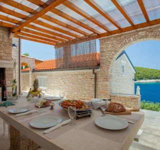 The villa is located in the perfect location, first line by the sea, in the cove called Kovnici on the northern coast of the island Korcula. It is away from the crowd, very private, yet just a short drive away from the lively tourist town of Vela Luka. Villa is surrounded by typical Mediterranean vegetation, pine and olive trees.